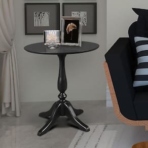 Mesa Lateral Madeira Rústica Pé Torneado S/borda - Preta - Cor: Preto