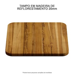 Tampo em madeira maciça de reflorestamento, pode haver variação de tonalidades e veios.