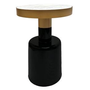A mesa lateral redonda Urban Port de 20 polegadas, tampo de mármore natural com faixas, base de pedestal de ferro revestido de esmalte, branca, dourada e preta
