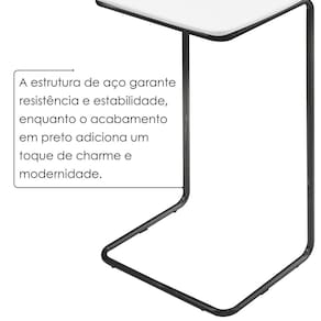 Uma mesinha elegante e funcional, ideal para a sala de estar. Com tampo em MDF que oferece resistência e um acabamento refinado, ela combina durabilidade com estilo. Sua base em aço garante estabilidade e um design contemporâneo, adicionando um toque moderno ao ambiente. Perfeita para apoiar objetos decorativos ou utilitários, unindo praticidade e sofisticação. Ambiente Principal: Sala de Estar Cor: Branco/Preto Cor do Produto: Branco/Preto Escala de Brilho: Fosco Itens Inclusos: 1 Mesa Manual de Montagem e Instalação: https://product-hub-prd.madeiramadeira.com.br/976098/documents/9cbcb3b3-a833-45c3-8617-a67df3a3e4862655889493817381771997188.pdf Marca: Larflex Material do Tampo: MDF Material Principal: MDF Necessita Montagem: Não Origem do Produto: Nacional Peso: 2,9 kg Possui Espelho: Não Possui Possui Gavetas: Não Possui Portas: Não Possui Prateleiras: Não Recomendações de Uso, Manutenção e Limpeza: Um pano seco e um pano levemente umedecido, evitar alvejantes e produtos de limpeza. Suporta Até (kg): 5 kg