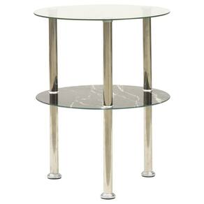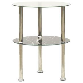 Mesa lateral moderna de 2 camadas vidaXL de 15" — mármore transparente e preto, vidro temperado com acabamento áspero, móveis versáteis para sala de estar