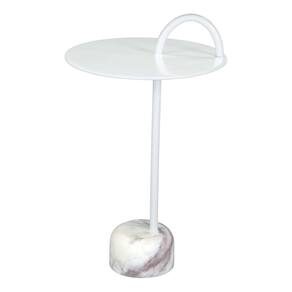 Mesa lateral Will branca, mesa final branca, estilo moderno, mesa redonda de ferro revestido a pó, ferro, sala de estar, 12" L x 12" P x 25" H