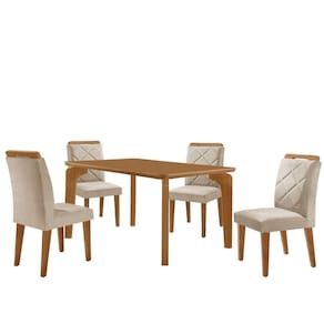 Mesa Liz 120 Mdf Com 4 Cadeiras Melissa Veludo Creme/naturalle/naturalle Mesa de Jantar Liz 120cm MDF Canto copo e com 4 Cadeiras Melissa A Mesa Liz com as Cadeiras Melissa e um verdadeiro icone de elegancia e sofisticacao para seu espaco. O conjunto exibe um design minimalista, com a mesa apresentando uma base de curvas sutis que adicionam um toque de classe. As Cadeiras Melissa oferecem conforto excepcional com seus assentos e encostos estofados, enquanto os bordados detalhados no encosto proporcionam um charme adicional. Esses elementos combinados criam um ambiente refinado e de bom gosto, elevando a decoracao do seu espaco com um toque de estilo.