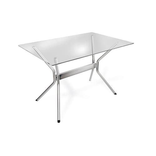 As mesas da linha crome Kappesberg possuem estrutura metálica e acabamento polido. As estruturas cromadas são feitas através de um processo 100% autorizado, enquanto que as estruturas pintadas, utilizam tinta epóxi em sua composição, tornando o produto mais resistente e durável. A mesa Loire conta com um design diferenciado em sua estrutura, além da pintura cromada, que garante elegância ao produto. O tampo de vidro com espessura de 6mm dá um charme a mais na composição e deixa seu espaço ainda mais moderno e prático.