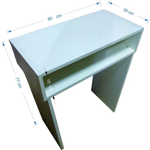 Produto 100% mdf, acabamento branco tx, muito mais resistente que pintura. Multiuso, pode ser utilizada como mesa de manicure, aparador, escrivaninha, expositor de produtos. Dimensões: 80cm largura x 77cm altura x 30cm profundidade Enviamos desmontado para não danificar no transporte. Segue manual de montagem, que garante uma montagem fácil. Marca: Moveis la