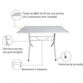 Mesa Moema 120x70 Para Sorveteria Restaurante Branca Base Branca Mesa Moema 120 x 70 A Mesa Moema foi projetada para garantir praticidade e facilidade para aproveitar o melhor do seu espaço. Com design moderno e atraente, este jogo de mesa atende a ambientes compactos como sacadas, varandas, apartamentos e também diversos tipos de estabelecimentos comerciais como sorveterias, bistrôs, lanchonetes, clubes, casas de sucos e estabelecimentos do ramo alimentício em geral. Compacta, lhe permite organizar o espaço propiciando acomodação confortável e otimização do layout. Você ainda poderá contar com a resistência da base de aço com pintura epóxi eletrostática que confere durabilidade e praticidade na limpeza. Além disso, é composta por duas peças encaixáveis, o que facilitam seu manuseio e montagem, conferindo também maior estabilidade à peça. Seu tampo em MDF de 15mm é tratado para ser resistente à umidade, protegendo a madeira e possibilitando seu uso também em ambientes externos. Leve, permite que você modifique o ambiente com facilidade para melhor atender à qualquer tipo de demanda. Seu design elegante e sutil permite que ela harmonize com vários modelos de cadeiras, adaptando facilmente o ambiente para o seu estilo.