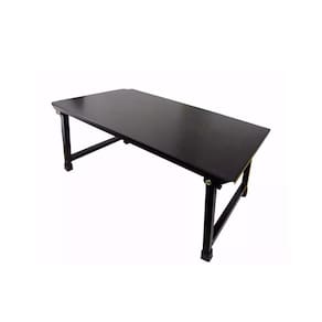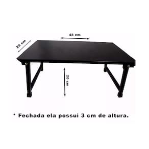 Descrição: Mesa multifuncional e para Notebook. Prática, leve, dobrável e durável. Altura fechada: 3cm - aberta: 20cm. Pintura eletrostática a pó. Disponível na cor: preta.