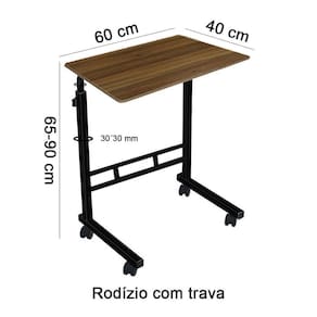 A cor imbuia confere um visual elegante e moderno à mesa, que se encaixa perfeitamente em qualquer ambiente. Os rodízios rodinhas permitem que você mova a mesa com facilidade, enquanto a trava garante estabilidade durante o uso.