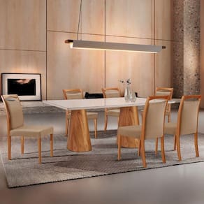 Com o Conjunto Sala de Jantar Noronha e Cadeiras Munique, voce transforma sua sala de jantar em um ambiente que une elegancia natural, sofisticacao e conforto.