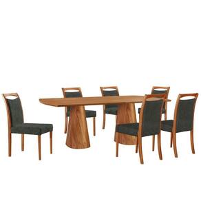 Mesa Noronha 180cm Tampo Laminado Barril Com 6 Cadeiras Livi Jade Imbuia Natural