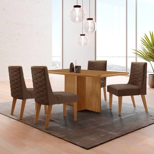 Mesa Olimpia 120 Mdf Canto Copo E Com 4 Cadeiras Safira Veludo Marrom/naturalle/naturalle