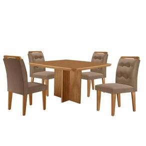 Mesa Olimpia 90 Mdf Canto Copo E Com 4 Cadeiras Carol Veludo Capuccino Naturalle Mesa de Jantar Olimpia 90cm MDF Canto copo e com 4 Cadeiras Carol Para quem tem um espaco compacto e nao quer abrir mao da elegancia, a Mesa Olimpia com as Cadeiras Carol e a escolha ideal. Este conjunto combina um design minimalista com a base da mesa, que exibe detalhes unicos e sofisticados. As Cadeiras Carol oferecem conforto com seus assentos e encostos estofados, e os botoes decorativos no encosto adicionam um toque distintivo. Esses detalhes fazem toda a diferenca, proporcionando um toque final que renova e eleva seu ambiente com bom gosto e elegancia.