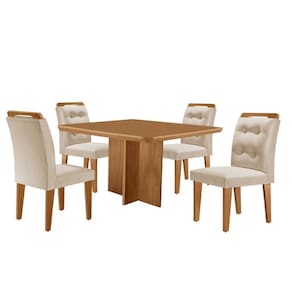 Mesa Olímpia 90cm Mdf Com 4 Cadeiras Carol Veludo Creme Naturalle - Bege