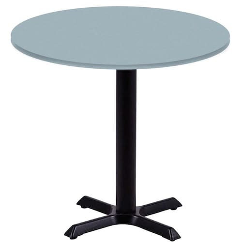 Mesa Ômega Ferro Preto 74 cm (Alt) Base em X Tampo MDP Redondo 80 cm (Larg) x 2,50 cm (Alt) Cinza