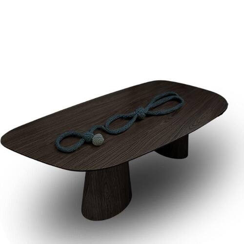 Dimensões:Altura: 75 cm cm Profundidade: cmEstrutura Laminada em Madeira l Freijó Claro, contra tampo em MDF 18 mm e um tampo de MDF Melamina em ébanoEssa mesa possui duas bases em formato cilindro oval, elas são revestidas em lâmina de madeira l e acompanha um lindo tampo na cor freijó Claro em formato orgânico em MDF Melamina muito resistente e ideal para superfícies de apoio como tampo de mesa.