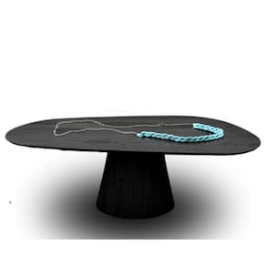 Dimensões:Altura: 75 cm Medidas 90 Comporta 6 CadeirasBase Oval MDF Laminada em ébano Lamina . (podendo escolher outras cores lamina)Tampo da mesa. MDF Melamina de 18 mm Chanfrado.