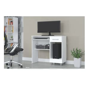 Monte seu ambiente de trabalho ou estudo com conforto e praticidade, desfrute de toda a funcionalidade que esse produto oferece. Possui base fixa, prateleira móvel para teclado, prateleira de apoio, gaveta e espaço para CPU.