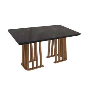 Mesa p/ Cozinha Alteia c/ Tampo Madeirado c/ Vidro 90x160cm Nogueira/Preto fosco/Vidro preto - Kappesberg - Blush