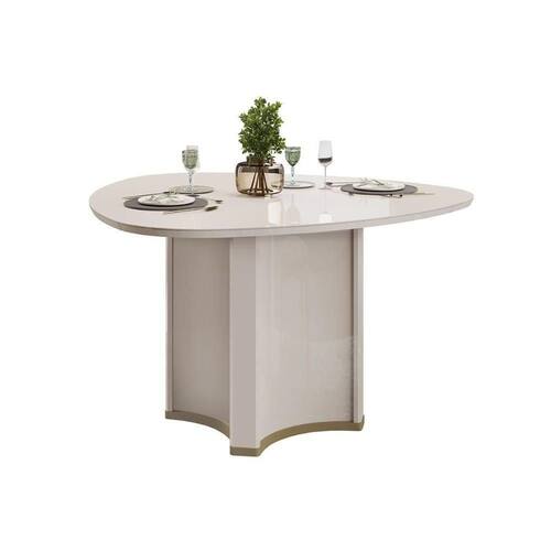 Mesa de Sala Jantar c/ Tampo Madeirado c/ Vidro Orgânico 136x136cm Off White/Off White - DJ Móveis Marca: DJ Móveis