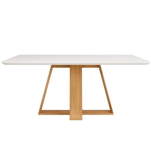 Mesa de Sala Jantar Kiara c/ Tampo Madeirado Vidro Curvo 160x90cm Cedro/Off White - DJ Móveis