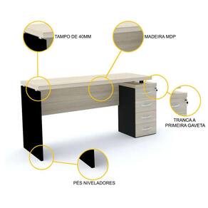 Quantas horas por dia você passa à frente da sua mesa de escritório? E seus colaboradores? Ao pesquisar opções de mesas de trabalho, leve isso em consideração: é preciso oferecer qualidade, conforto e opções de organização para que o dia a dia corporativo seja mais prático e prazeroso. Ah, claro! Se puder acrescentar beleza e elegância, melhor. Nada como um ambiente de trabalho agradável, seja ele um simples home office ou uma grande organização ou indústria. Com pés em painel na cor preta e quatro gavetas com fechadura, essa mesa confeccionada em madeira MDP clara é uma peça com a qualidade da linha PE40 da marca Pandin, conhecida por seus móveis de escritório de design clássico e sofisticado que unem beleza, funcionalidade e estilo ao melhor custo-benefício do mercado. Para que seu projeto fique completo, consulte nossa loja e encontre outras opções de móveis da mesma linha. Também oferecemos mesas com gavetas para pastas suspensas, mesas modulares, mesas sem gaveta, arquivos, estantes, gaveteiros e armários, para que sua decoração fique harmoniosa e profissional.