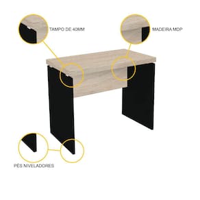 Nem sempre é preciso investir em um móvel cheio de detalhes e compartimentos. Às vezes, tudo o que você precisa é do básico. Apresentamos a menor mesa de escritório da nossa linha, com tampo em madeira clara e pés pretos. Ela pode ser usada como mesa de trabalho diário, ou então como mesa auxiliar para apoiar impressora, telefone, aparelhos eletrônicos ou outros documentos que precisam de organização no seu espaço de trabalho. Elegante, prática e versátil, esta mesa sem gavetas é simples, na medida certa para ser um complemento a todo tipo de decoração e necessidades da sua empresa, home-office ou ambiente corporativo. Esta mesa é uma peça com a qualidade da linha PE40 da marca Pandin, conhecida por seus móveis de escritório de design clássico e sofisticado que unem beleza, funcionalidade e estilo ao melhor custo-benefício do mercado. Para que seu projeto fique completo, consulte nossa loja e encontre as outras opções de mesas modulares ou com gavetas desta linha. Confira também os arquivos, estantes, gaveteiros e armários que complementam sua escolha.