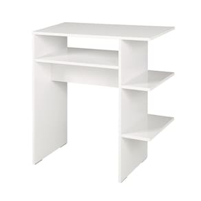 Descritivo: Comprimento - 710 mm Altura - 765 mm Largura - 300 mm Suporte apoio lateral - 300 x 157 mm Suporte central - 514 x 300 mm Tampo em mdf com espessura de 15mm Disponível na cor branca