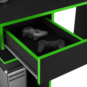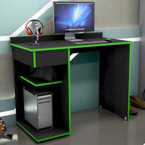 Espaço de Armazenamento organizado: Oferecendo um espaço amplo em sua gaveta e prateleiras, a escrivaninha gamer disponibilizará a organização que você precisa para acomodar seus itens preferidos. Produto Montado: Sim Acompanha Manual de Instalação: Sim Ambiente Principal: Escritório codigo_ean: 7900288218292 Complexidade da Montagem: Baixa: pode ser montado por uma pessoa sozinha Cor: Preto / Verde Cor do Produto: Preto / Verde Cor do Tampo: Preto Cor Interna: Preto Escala de Brilho: Fosco Espessura do Tampo: 15 mm Itens Inclusos: 1 Mesa para Computador e Manual de Montagem Linha ou Coleção: Gamer Manual de Montagem e Instalação: https://product-hub-prd.madeiramadeira.com.br/435031442/documents/ee47457c-93f1-4b4f-8048-3b868de591c33062933615417521736119617.pdf Marca: Móveis Bosi Material Principal: MDP Necessita Montagem: Sim Origem do Produto: Nacional Peso: 20 kg Peso Máximo por Gaveta: 10 kg Peso Máximo por Prateleira: 5 kg Posição da Gaveta: Lateral Possui Acabamento na Parte de Trás: Não Possui Gaveta para Pasta Suspensa: Sim Possui Passa Cabos: 02 Possui Porta Objetos: Não Possui Prateleiras: Sim Possui suporte para CPU: Sim Possui Suporte para Teclado: Não Possui Vidro: Não Quantidade de Gavetas: 01 Gaveta Quantidade de Prateleiras: 01 Prateleira Recomendações de Uso, Manutenção e Limpeza: Limpar com pano seco Suporta Até (kg): 20 kg Tipo de Corrediça da Gaveta: Metálica Simples