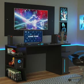 O Conjunto da Mesa para Computador Gamer 9409 da Madesa + Painel para TV é uma grande opção para deixar sua jogatina ainda mais confortável.