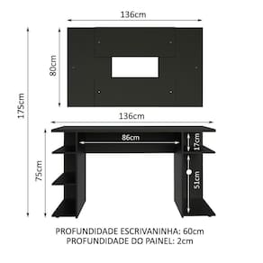 E para deixar seu espaço ainda mais otimizado, o painel comporta TV ou monitor de até 58 polegadas. Com design que combina linhas horizontais e verticais, possui abertura central possibilita uma melhor organização dos fios e cabos.