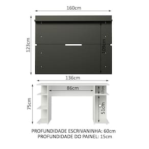 O acabamento da mesa é branco e o do painel é preto. São feitos com a Pintura Poliéster ecológica de 7 camadas exclusiva da Madesa, que traz mais proteção aos móveis.