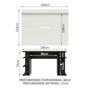 O acabamento da mesa é branco e o do painel é preto. São feitos com a Pintura Poliéster ecológica de 7 camadas exclusiva da Madesa, que traz mais proteção aos móveis.