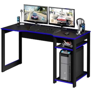 Mesa Para Computador Gamer Espaço Para 2 Monitores E Cpu Preto/azul A Mesa Gamer foi pensada para oferecer o ambiente ideal para quem utiliza o computador diariamente, seja para trabalho, estudo ou lazer. Com espaço específico para dois monitores, ela organiza seus dispositivos eletrônicos em um só lugar, mantendo o ambiente limpo e funcional. É a escolha certa para quem quer eficiência sem abrir mão do estilo. Dimensões da Mesa para Computador Gamer Espaço para 2 Monitores e CPU: - Altura: 75 cm - Largura: 136 cm - Profundidade: 60 cm