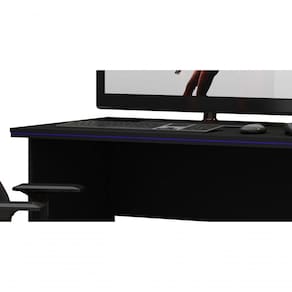 Mesa Para Computador Gamer Preto Com Azul - Gelius Móveis Ideal para montar o seu setup e dispor seus equipamentos a Mesa para Computador Gamer - Gelius Móveis, irá proporcionar uma melhor , e também garantir um melhor desempenho na sua rotina, possui espaço para o gabinete. Além de nichos organizadores. Conta com detalhe colorido em perfil, podendo-se escolher a cor no momento da ões do Produto montado:Altura: 77 cmLargura: 133,8 cmProfundidade: 62 cmObservações:- Nichos amplos;- Detalhe em perfil azul e vermelho para escolha na hora da montagem;- Espaço para gabinete;- Pintura ultravioleta com acabamento acetinado.