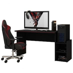 Mesa Para Computador Gamer Preto Com Vermelho - Gelius Móveis Ideal para montar o seu setup e dispor seus equipamentos a Mesa para Computador Gamer - Gelius Móveis, irá proporcionar uma melhor , e também garantir um melhor desempenho na sua rotina, possui espaço para o gabinete. Além de nichos organizadores. Conta com detalhe colorido em perfil, podendo-se escolher a cor no momento da ões do Produto montado:Altura: 77 cmLargura: 133,8 cmProfundidade: 62 cmObservações:- Nichos amplos;- Detalhe em perfil azul e vermelho para escolha na hora da montagem;- Espaço para gabinete;- Pintura ultravioleta com acabamento acetinado.