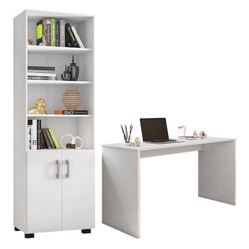 Mesa para Computador Gávea e Livreiro Office com Portas Pequenas Branco Trama - Móveis Leão