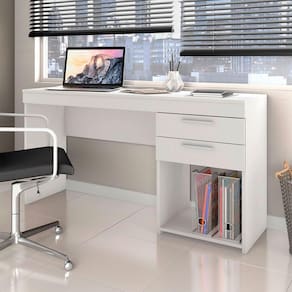 Mesa Para Computador Office Branco - Notavel Com design compacto e funcional, a Mesa Office NT é a escolha ideal para quem busca praticidade e elegância na organização do espaço de trabalho ou estrutura bem planejada inclui tampo amplo, uma gaveta com corrediças metálicas e nicho lateral que facilita o armazenamento de itens como livros, materiais de escritório ou até mesmo a acabamento em pintura UV proporciona um visual moderno e maior durabilidade à peça, enquanto o design minimalista se adapta com facilidade a diferentes estilos de decoraçãém disso, a estrutura firme em MDP garante resistência no uso diário, e as sapatas niveladoras ajudam a manter a estabilidade mesmo em pisos ões:Altura: 76,8cmLargura: 121cmProfundidade: 41cmObservações:- Tampo espaçoso e estrutura firme, ideal para notebooks e acessórios de escritório- Gaveta com corrediças metálicas que garantem abertura suave- Nicho lateral para organização adicional ou acomodação de CPU- Acabamento em pintura UV de alta resistência- Design clean e moderno, ideal para ambientes residenciais ou corporativos- Sapatas niveladoras para maior estabilidade