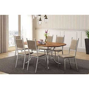 Mesa de Sala Jantar 1547 Aço c/ Tampo Madeirado 160x90cm Rose/Freijo - Carraro