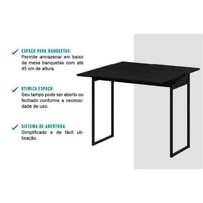 Mesa de Sala Jantar 1589 Extensível Preto - Carraro