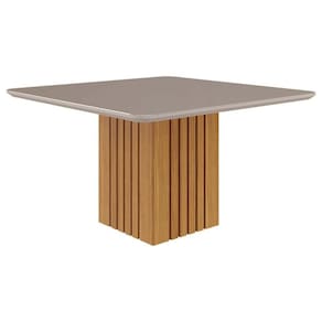 Mesa de Sala Jantar Ana + Tampo Madeirado Vidro 130x130cm Nature/Off White - Cimol