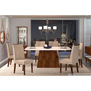 Mesa de Sala Jantar Italia + Tampo Madeirado Vidro 170x90cm Freijó/Off White - DJ Móveis Marca: DJ Móveis
