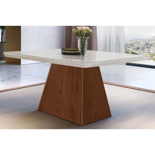 Mesa de Sala Jantar Luna c/ Tampo 120x80cm Madeirado Vidro Canto Curvo - Imbuia/Ripado 3D/Off White - Rufato Marca: Rufato
