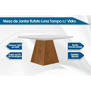 Mesa de Sala Jantar Luna c/ Tampo 90x90cm Madeirado Vidro Canto Curvo - Imbuia/Ripado 3D/Off White - Rufato