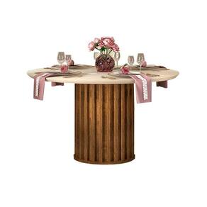 Mesa P/ Cozinha Viena C/ Tampo Madeirado C/ Vidro 136cm Cedro/off White - Dj Móveis