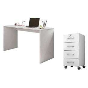 Mesa para e Gaveteiro Gávea com Chave 4 Gavetas Branco Fosco - Móveis Leão
