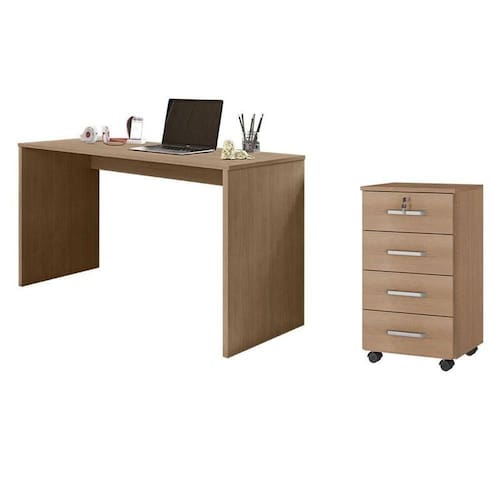Mesa para e Gaveteiro Gávea com Chave 4 Gavetas Freijó Fosco - Móveis Leão