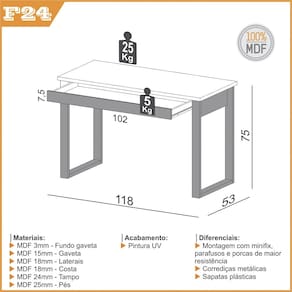 Itens Inclusos: 1 Mesa Escritório (F24)