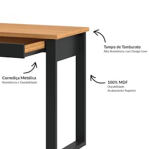 Características: Estrutura 100% MDF Acabamento em Pintura UV 01 Gaveta com Corrediças Metálicas Sapatas Plásticas Estilo Industrial Tampo Leve e Resistente