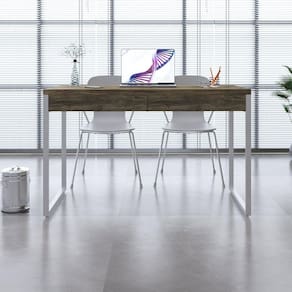 A Linha Kuadra tem seu design com inspiração no estilo industrial, que remete muito a decoração usada nos Lofts das grandes metrópoles nos anos 60 e 70. Harmonizando o metal e os tons de madeira, foram projetados móveis versáteis e com estilo, que podem compor ambientes flexíveis cheios de personalidade, perfeitos para você decorar sua casa ou seu trabalho, tendo um resultado que caminha do estilo rústico ao moderno. Acabamento dos Pés: Pintura Acompanha Manual de Instalação: Sim Ambiente Principal: Escritório Complexidade da Montagem: Média: pode ser montado por mais de uma pessoa e/ou necessite de maior conhecimento para montagem Cor: Carvalho / Est.Branca Cor da Base: Branco Cor do Produto: Carvalho / Est.Branca Cor do Tampo: Marrom Cor Interna: Carvalho Escala de Brilho: Fosco Espessura do Tampo: 30 Formato: Retangular Gaveta com Chave: Não Itens Inclusos: 1 Mesa, Kit Ferragens e Manual de Montagem Manual de Montagem e Instalação: https://cdn2.madeiramadeira.com.br/atributo/compace-dalex/1713655-mesa-kuadra-com-02-gavetas.pdf Material da Estrutura: Aço Material do Puxador da Gaveta: MDP Material do Tampo: MDP Material dos Pés: Aço Material Principal: MDP Necessita Montagem: Sim Origem do Produto: Nacional Pés com Regulagem de Altura: Sim Peso: 21.94 Possui Passa Cabos: Não Possui Portas: Não Possui Prateleiras: Não Possui Suporte para Teclado: Não Quantidade de Gavetas: 02 Gavetas Recomendações de Uso, Manutenção e Limpeza: Para a limpeza, utilize flanela seca ou pano macio levemente umedecido em água. Utilize um pano seco em seguida. Evite contato com produtos químicos (solventes, thinner, acetona, etc) e não utilize nenhum tipo de esponja de aço. Sapatas Niveladoras: Sim Sistema de Montagem: Parafusos, minifix, cavilha, corrediça, bucha e sapatas niveladoras Suporta Até (kg): 40 Tipo de Corrediça da Gaveta: Metálica Simples