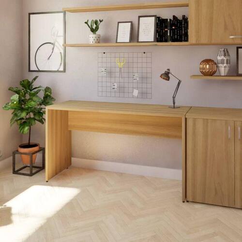 A Coleção Corp organiza qualquer espaço, desde um Home Office até um escritório corporativo. Feito com materiais resistentes e de qualidade, é a melhor opção para trabalhar ou estudar de forma harmoniosa. Disponível em diversas composições de cores para decorar seu ambiente. E vale lembrar que são feitos com material que respeitam o meio ambiente e as normas técnicas de ergonomia. Toda coleção de produtos da Bramov Brasil Móveis são perfeitas para ambientes residenciais, corporativos e executivos! A Mesa tem espessura do tampo de 25mm e pés com espessura de 25mm. Produto Montado: Sim Acabamento dos Pés: Melamínico Altura dos Pés: 75 cm Ambiente Principal: Escritório codigo_ean: 7908388136843 Complexidade da Montagem: Baixa: pode ser montado por uma pessoa sozinha Cor: Carvalho Mel Cor do Produto: Carvalho Mel Cor do Tampo: Bege Cor Interna: Carvalho Mel Dobrável: Não Escala de Brilho: Fosco Espessura do Tampo: 25 mm Formato: Retangular Gaveta com Chave: Não Informações Complementares: Produzido com Chapa da Arauco e Eucatex, empresas que respeitam o meio ambiente. Itens Inclusos: 1 Mesa, Ferragens e Manual de Montagem Linha ou Coleção: Corp 25 Manual de Montagem e Instalação: https://product-hub-prd.madeiramadeira.com.br/619742/documents/bab39206-882b-4055-b303-f70ed74d5ebf625769merecp122manual.pdf Material Principal: MDF Necessita Montagem: Sim Origem do Produto: Nacional Pés Reguláveis: Não Peso: 25 kg Possui Passa Cabos: Não Possui Pés: 02 Possui Porta Objetos: Não Possui Portas: Não Possui Prateleiras: Não Possui Suporte para Teclado: Não Recomendações de Uso, Manutenção e Limpeza: Limpar apenas com pano macio levemente umedecido. Sapatas Niveladoras: Sim Sistema de Montagem: Parafusos e Minifix Suporta Até (kg): 30 kg Ean: 7908388136843